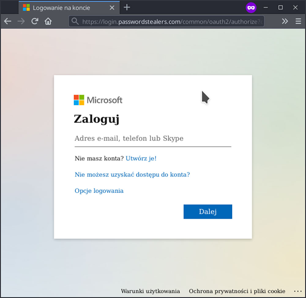 Due to the ongoing pandemic and a large number of people being forced to work from home, there has been a noticeable increase of phishing attacks, aimed at gaining access to company assets through social media platforms and cloud computing tools. One of the more popular ways to achieve that is acting as an app related to Office 365. This type of an attack requires a well falsified login page. If the victim fills the boxes in with required information, the attacker can easily gain access to cloud storage used by an organization and be able to tamper e.g. with messages, files and customer or financial data of a company.