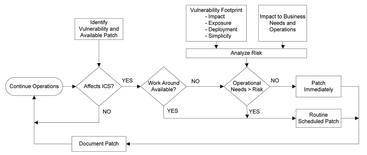 Zalecanym przez DHS (Department of Homeland Security) postępowaniem przed podjęciem decyzji o dokonaniu aktualizacji urządzeń automatyki jest przeprowadzenie analizy istotności zidentyfikowanej podatności. W przypadku, gdy luka bezpieczeństwa dotyczy komponentów przemysłowych należy uwzględnić poniższe warunki: